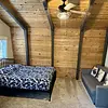 This home has a fully appointed kitchen and large dining room table to make meal time a pleasure. The gas furnace and central Air Conditioning system ensure a comfortable indoor environment year round. The cabin has four private bedrooms and delivers a perfect nights sleep for multiple families. This home has 4 comfortable King Beds and 1 Queen Bed plus 3 sofa beds and three chairs that convert into twin beds. The Living room has a comfortable sectional facing a 65 inch smart TV with Blu-ray player and streaming platforms. Starlink Wifi is very reliable connectivity and available anywhere in the house.